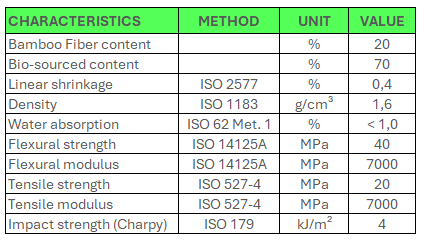 The compound is based on an unsaturated polyester resin reinforced with bamboo fibers and bio-sourced fillers, resulting in 70% bio-sourced content by weight. The carbon footprint of the end product is exceptionally low — significantly below that of conventional alternatives, whether petroleum-based plastics, steel, or aluminum. Without the full production lifecycle numbers in hand, we won't overclaim. What we can say is that this is one of the most carbon-responsible chairs you can manufacture today.
